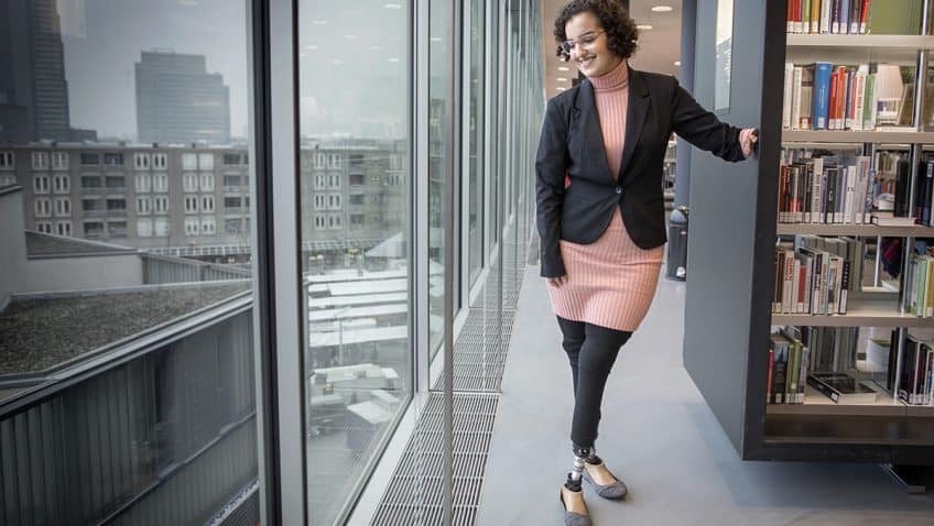 Haar Instagram-naam is @Bionic_Romana_23, in haar bio omschrijft ze zichzelf als ‘amputeegirl’. Ze deelt luchtige, positieve foto’s van haar dagelijkse leven, bijvoorbeeld in de sportschool, kroeg of restaurant. Maar ook van haar protheses. Derdejaars Finance & Control-student Romana Bougottaya weet wat ze wil. En wie ze is. Daar heeft ze hard voor moeten knokken.